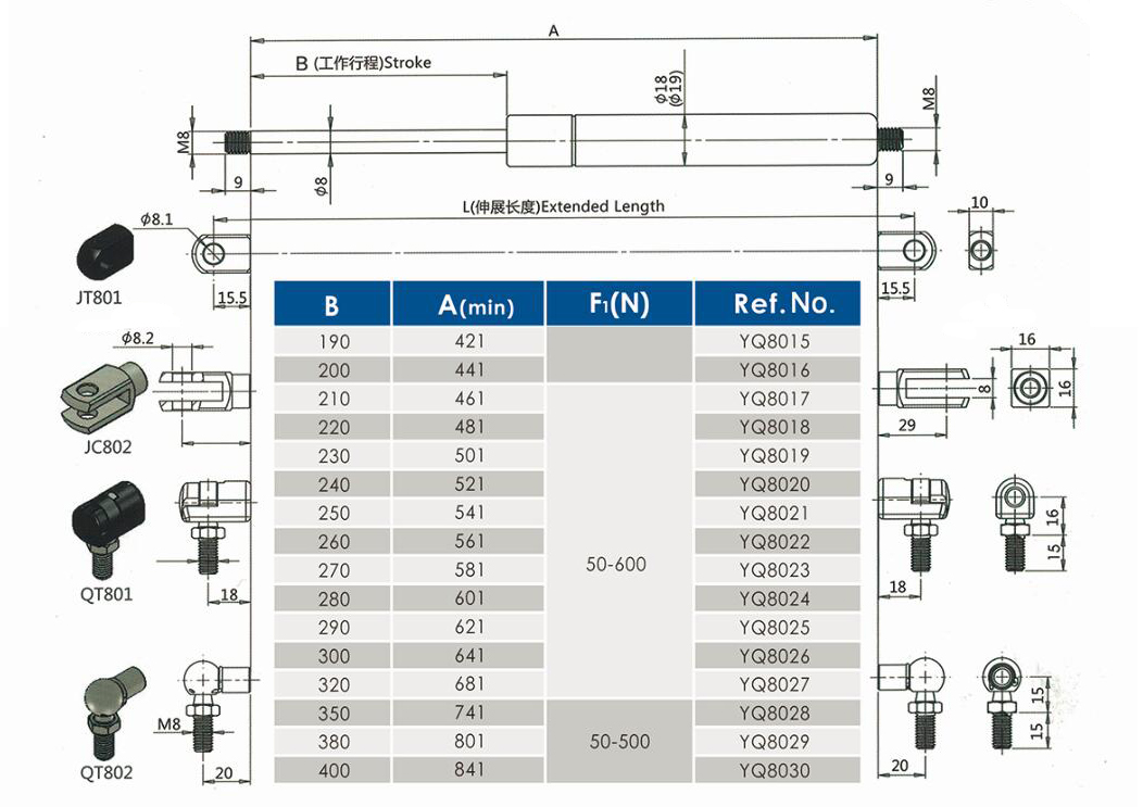 注:由于氣彈簧是非標(biāo)準(zhǔn)的,以上僅為型號的一部分。我們可以根據(jù)客戶的要求定制。